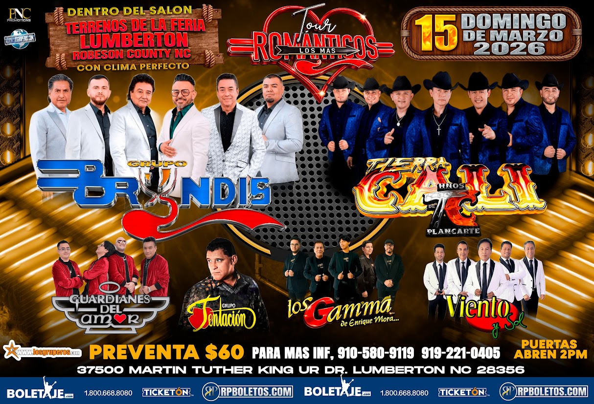 Grupo Bryndis-Hermanos Plancarte de TC-Guardianes Del Amor-Tentacion-Los Gamma-Viento Y Sol-Terrenos De La Feria Lumberton NC